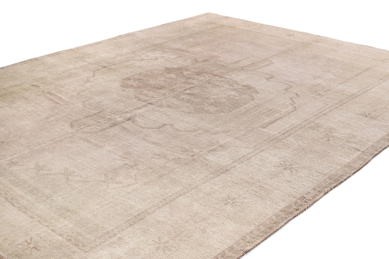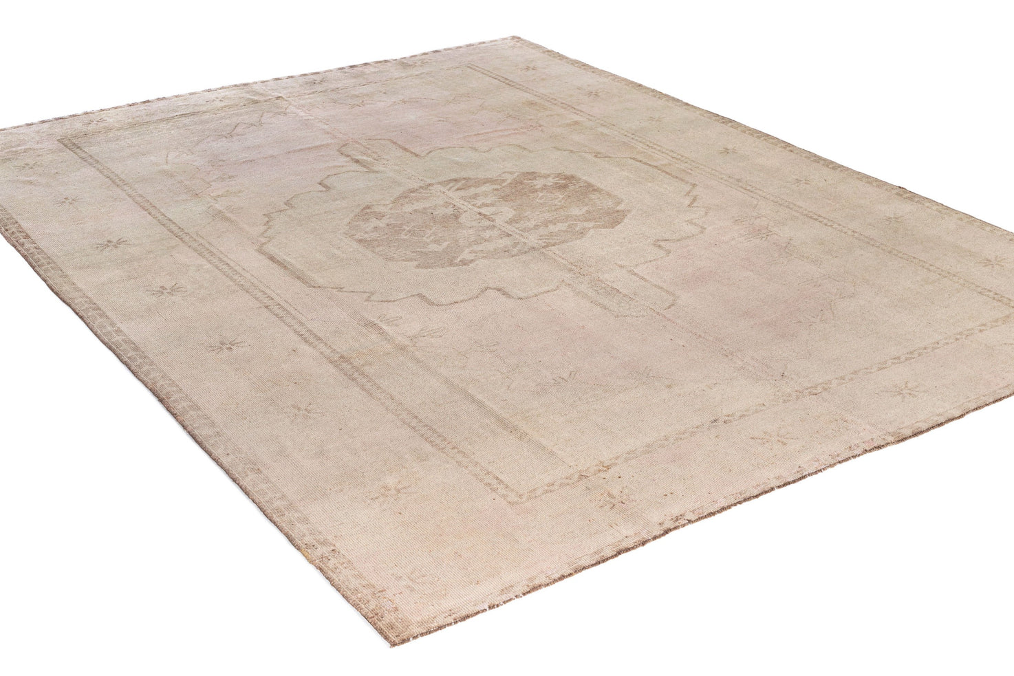 This faded Vintage Konya uses a delicate shade of cream white and gray to enrich the atmosphere of grandeur. This masterful weave may have been faded through years and washing, but it has been lovingly tended to and maintained. The carpet may be paler than a field in winter, but it carries a practiced warmth of talent wherever it goes. A fine addition to any collection.