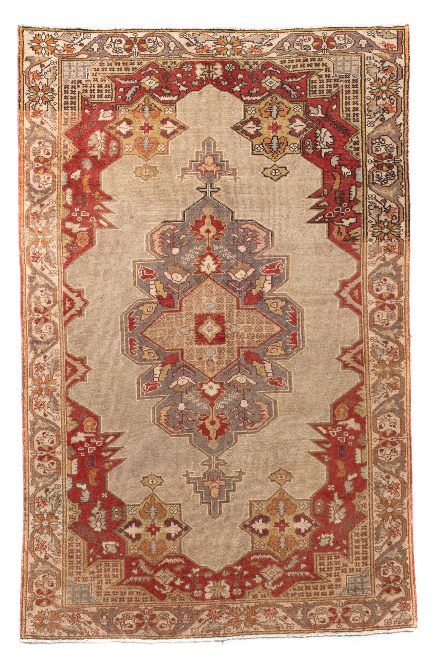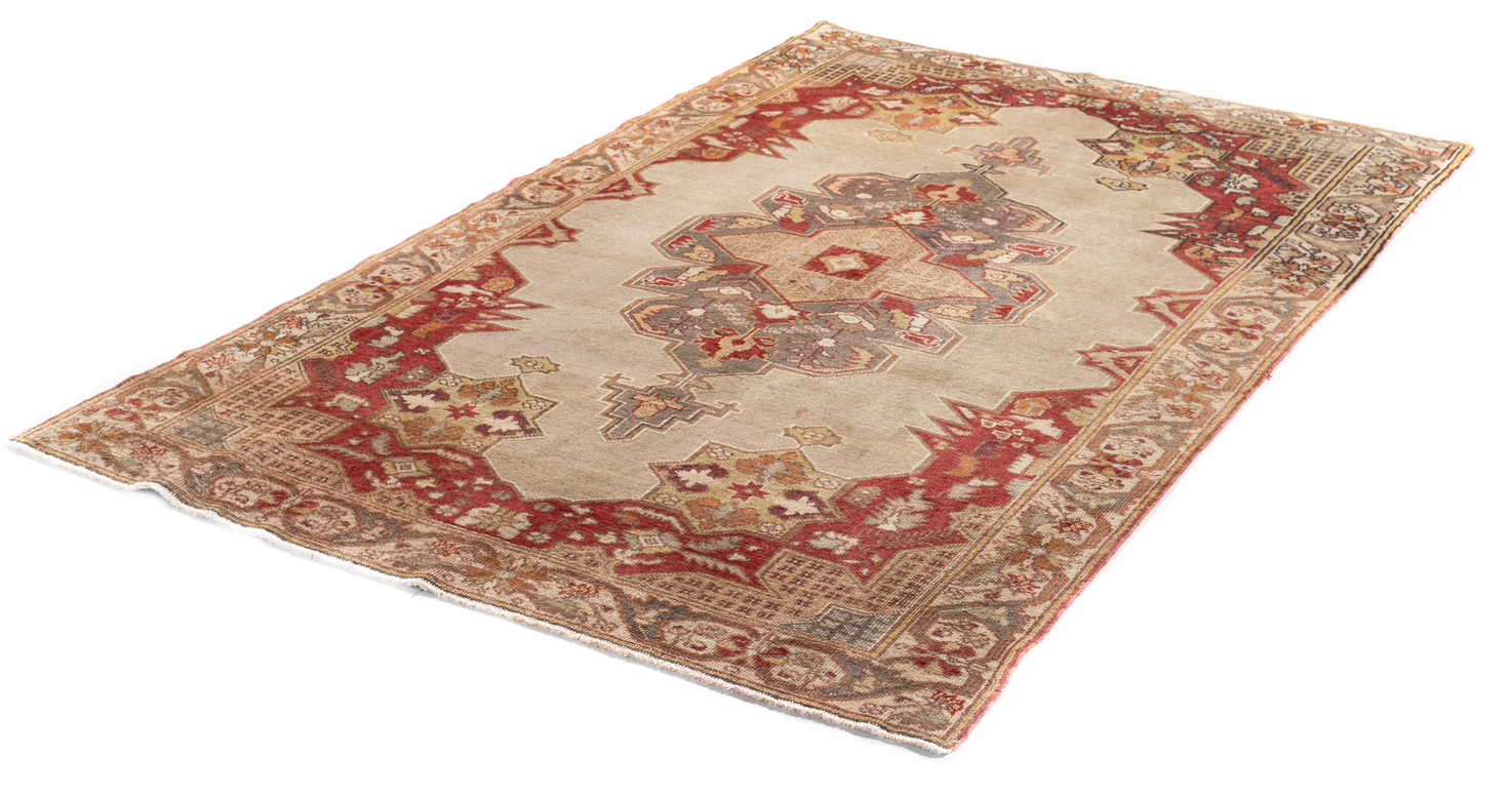 With its red and tan medallion flaring out from the center of the carpet and the corners of the field extend into wavy, floral constructs of red and gold. The blossoms past the palmettes are exquisite, edging the line between the white and the red. The medallion itself is a florid display of petals and color, and the border dives deep into a vine-laced, garden symmetry that pleases the eye.
